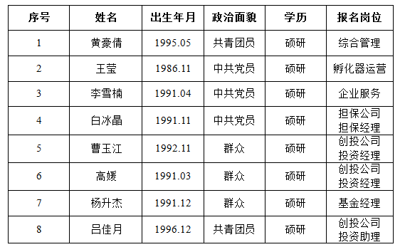 经公开报名、笔试、面试、考察、体检等审查,拟录用以下8人为我公司工作人员: